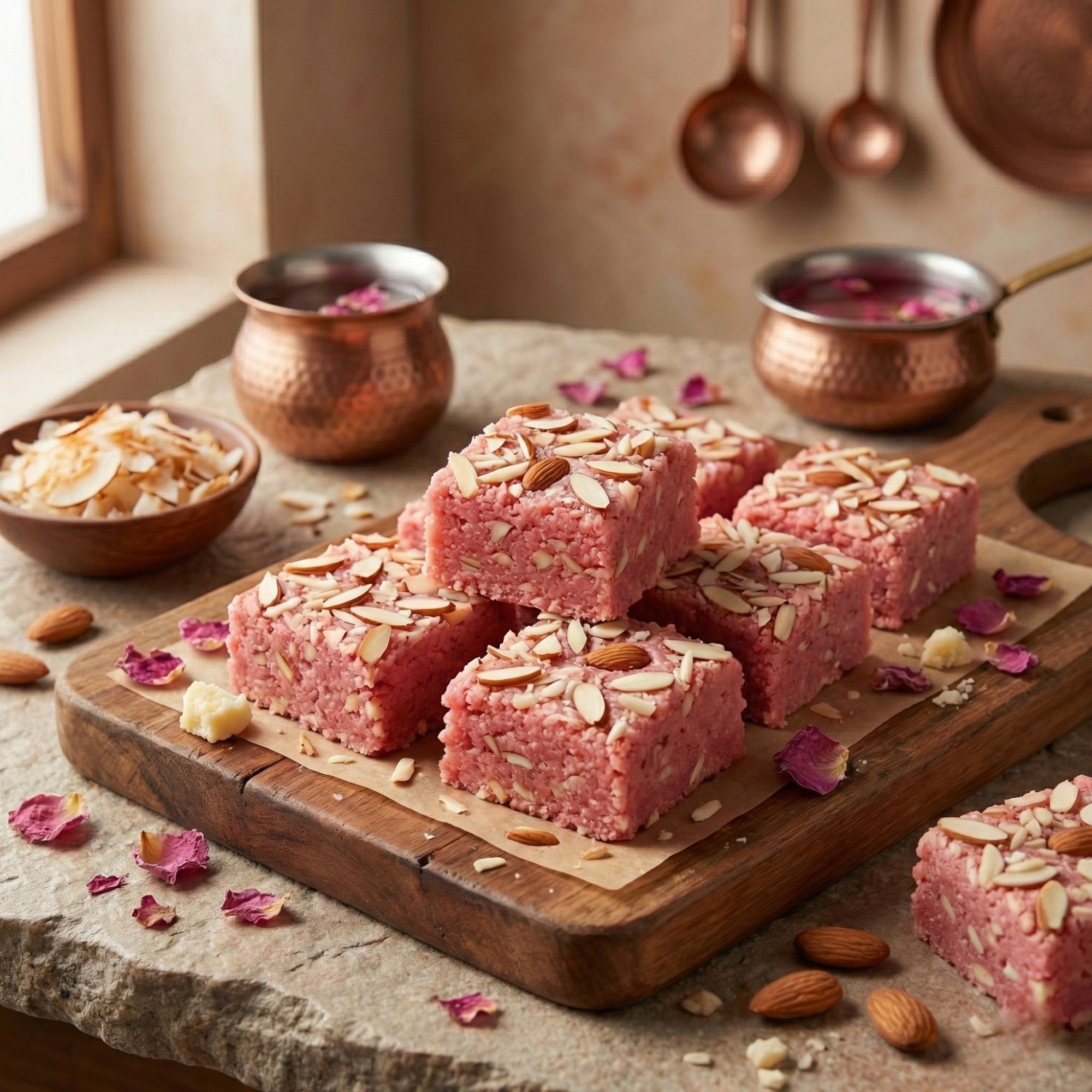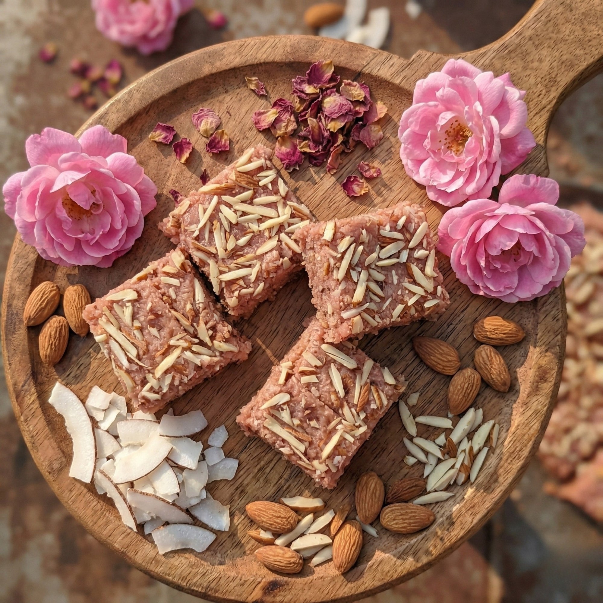 Experience the royal taste of our signature Gulab Pak, a delicate fusion of tradition and floral elegance. Handcrafted using premium Mava (Khoya) and sweet coconut flakes, this fudge-like treat is infused with the essence of pure pink roses, giving it a naturally aromatic sweetness that lingers on the palate.